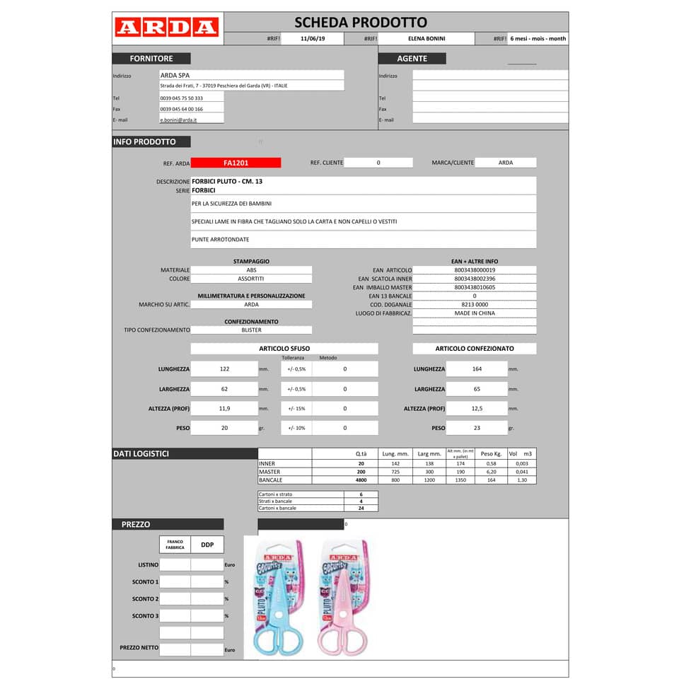 Forbice ARDA Pluto ABS/acciaio INOX assortiti punte arrotondate 13 cm FA1201