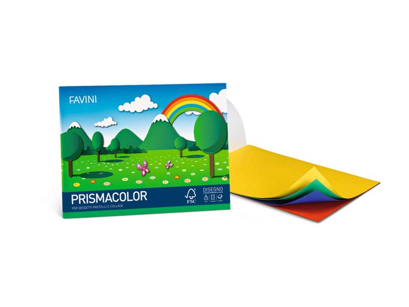 Prismacolor album: 128 g/m2, ff10 d4. Album in cartoncino monoruvido Prisma Favini in 5 colori assortiti. Adatto per pastelli, gessetti e collage.