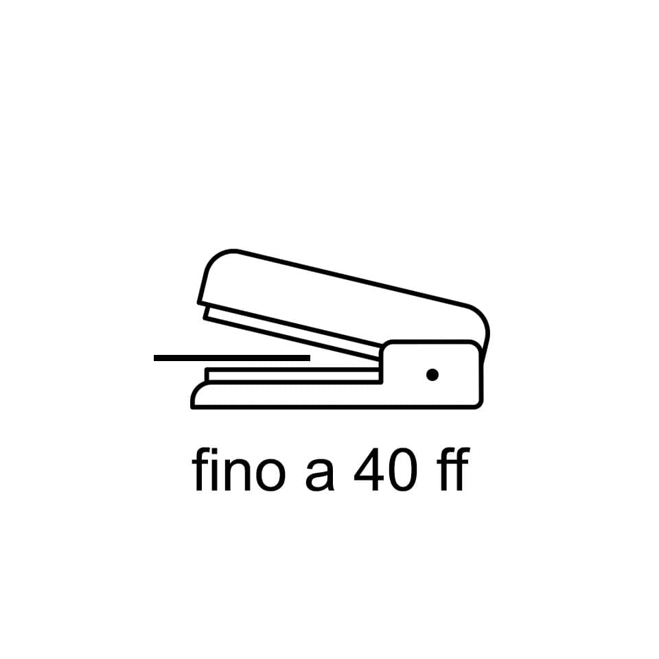 Cucitrice manuale a pinza in acciaio cromato (trattamento antiruggine), con spingipunto posteriore. Testata a mano singolarmente. Punto chiuso e punto aperto, tipo punto 24/6, 24/8 oppure 26/6. Cuce fino a 35/40 fogli. Capacità di carica 150 punti. Colore: silver.