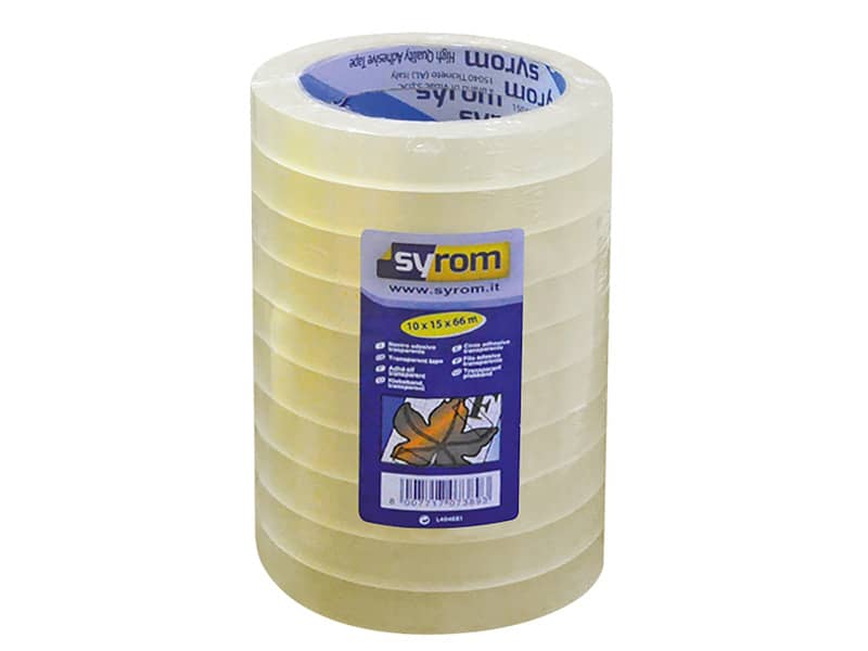 Nastro adesivo Noysy SYROM formato 15 mm x 66 m ppl trasparente torre da 10 rotoli - 7389