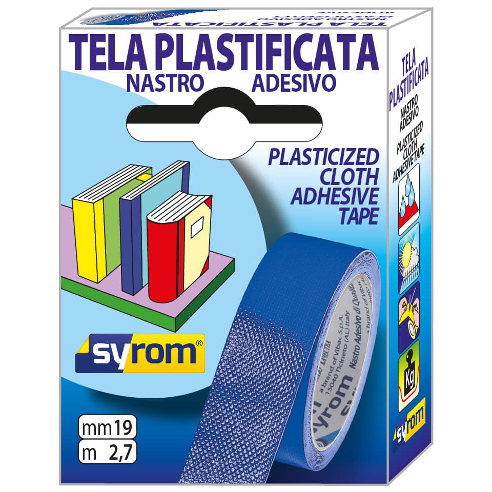 Nastro adesivo in tela Tes 702 SYROM formato 19 mm x 2,7 m - materiale tela plastificata blu - 7568