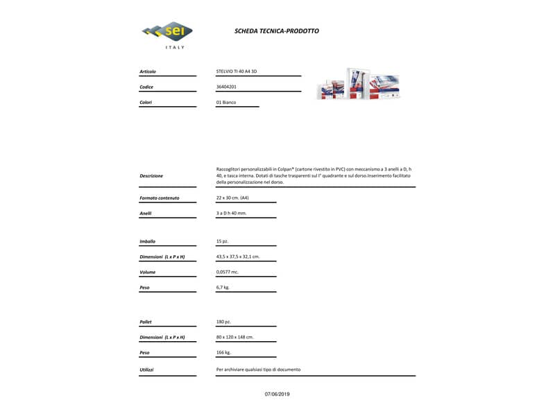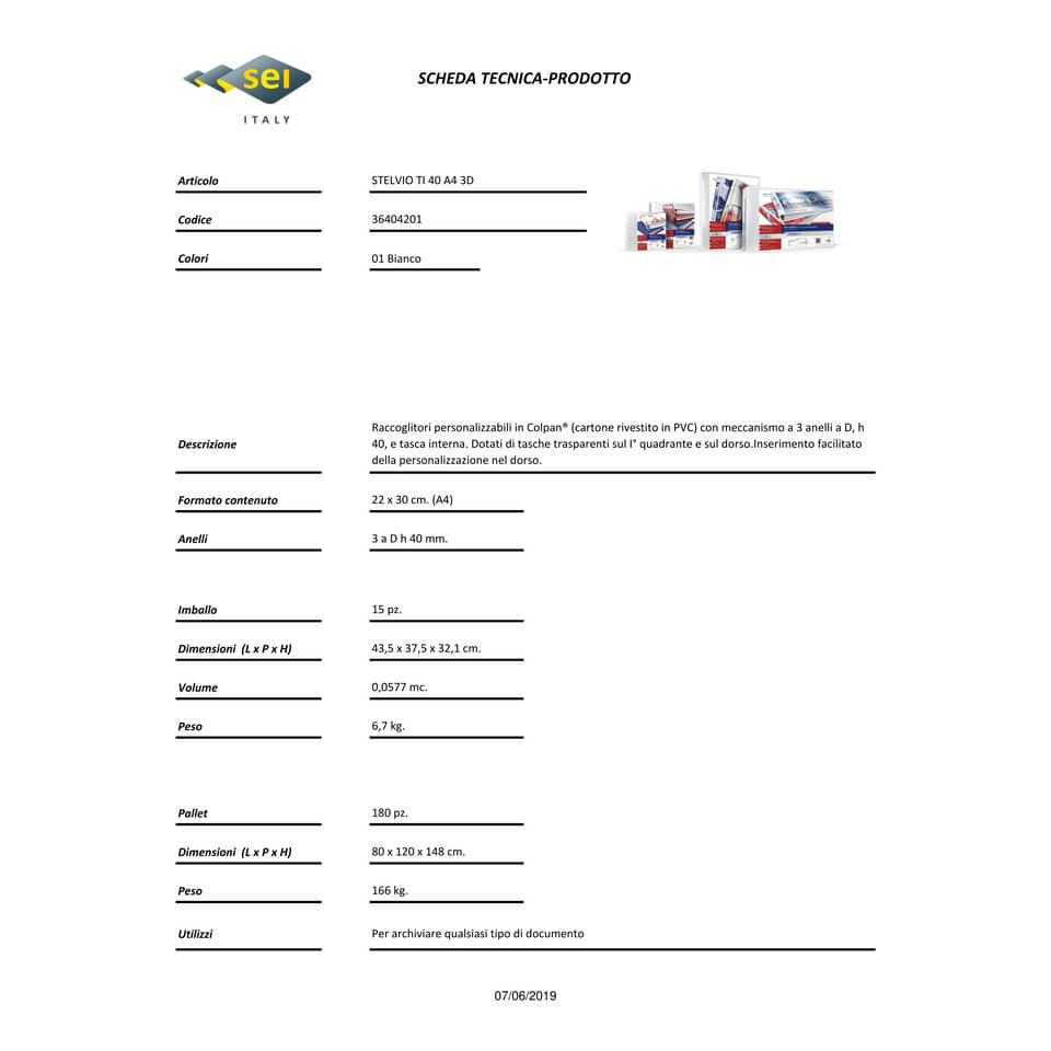 Raccoglitore personalizzabile Sei Rota Stelvio TI A4 - 3 anelli D 40 mm bianco dorso 5,5 cm - 36404201