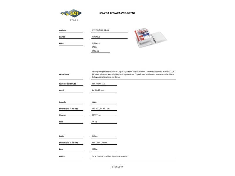 Raccoglitore personalizzabile Sei Rota Stelvio TI A4 - 4 anelli D 40 mm bianco dorso 5,5 cm - 36404601