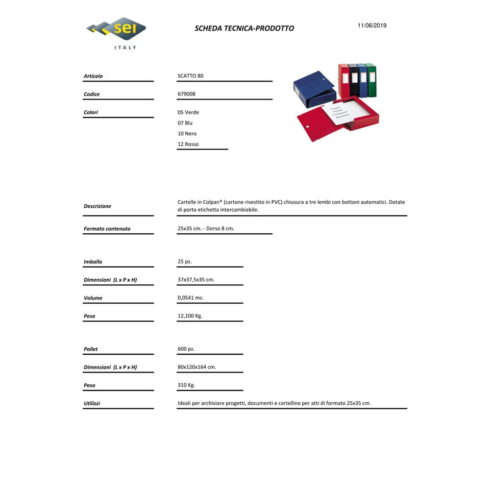 Cartelle portaprogetti Scatto in Colpan® (cartone rivestito in PVC), chiusura a tre lembi con bottoni automatici. Dotate di porta cartellino con etichetta intercambiabile. I dettagli in tinta evidenziano eleganza e raffinatezza. Ideali per archiviare progetti, disegni, documenti e cartelline per atti, per archiviare in modo rapido e preciso. Formato esterno 26x36 cm, formato contenuto 25x35 cm (A4), dorso 8 cm. Colore rosso.