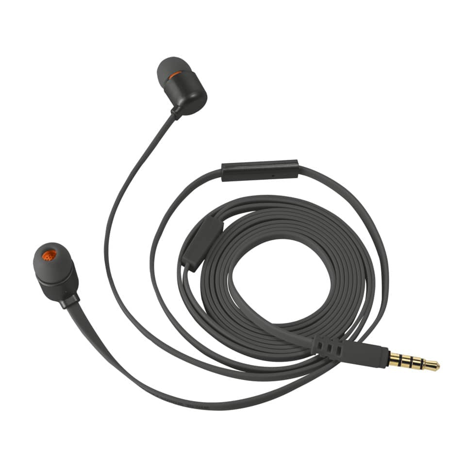 Auricolari in gomma morbida in 3 diverse misure, adatti per musica e telefonate. Cavo piatto che non si aggroviglia. Pulsante di risposta chiamata e microfono integrato. Colore nero.