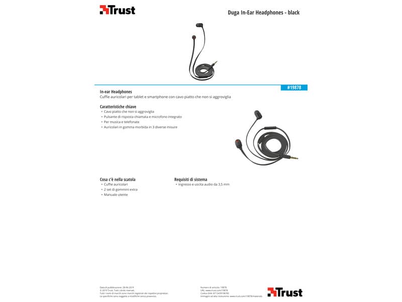 Cuffie auricolari in gomma Trust Duga in 3 misure nero 19878