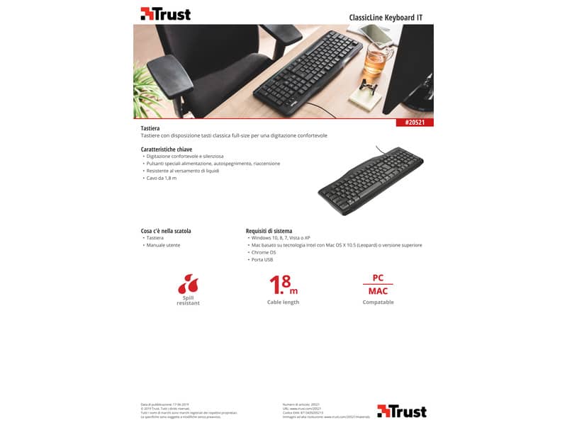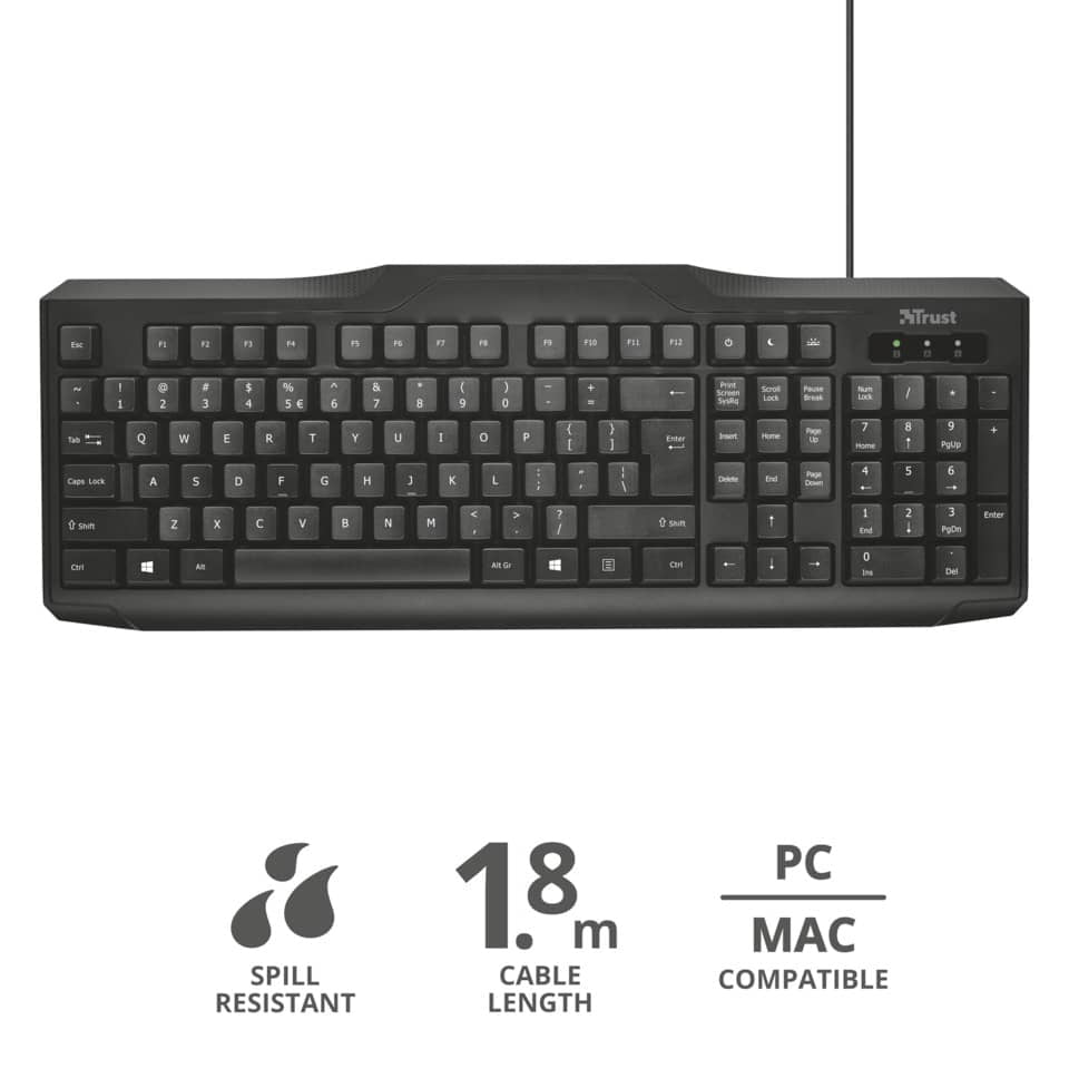 Tastiera con cavo da 1,8 m Trust ClassicLine nero 23670