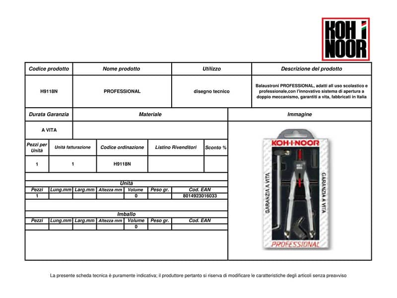Compassi adatti alla scuola e ad uso professionale. Garantiti a vita, interamente fabbricati in Italia. Balaustrone professionale con aste snodate, allunga e ricambi 170 mm.