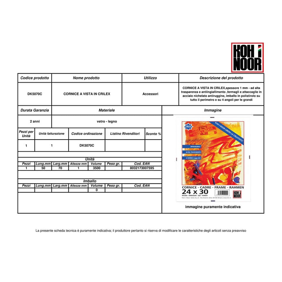 Cornice a vista in crilex KOH-I-NOOR 50x70 cm DK5070C