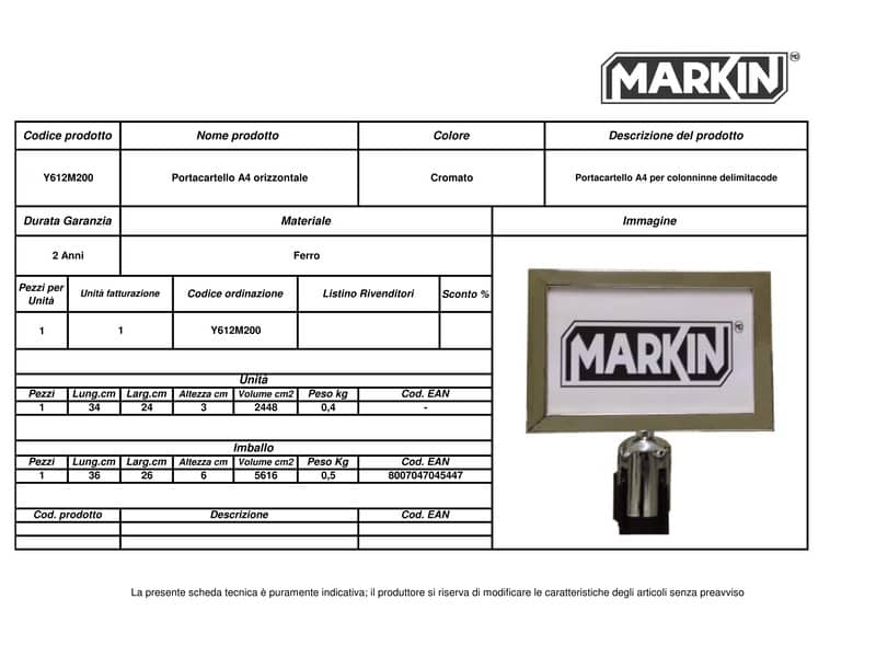 Porta cartello MARKIN orizzontale A4 per separacode Y612M200