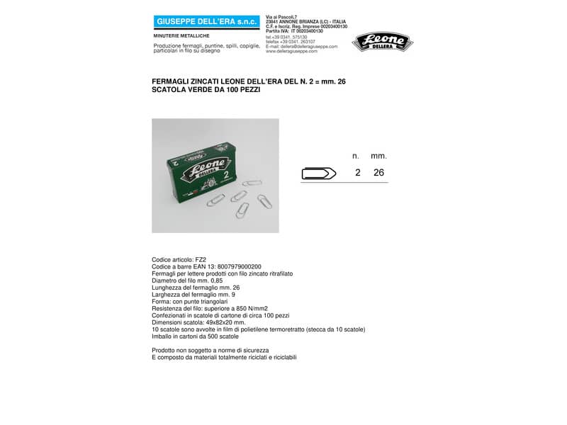 Fermagli Leone in acciaio zincato N. 2 0,85x26 mm triangolari zinco brillante scatola da 100 pz. - FZ2