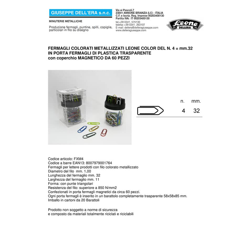 Fermagli Leone Dell'Era in filo colorato metallizzato N. 4 Assortiti barattolo calamitato da 60 pz. - FXM4