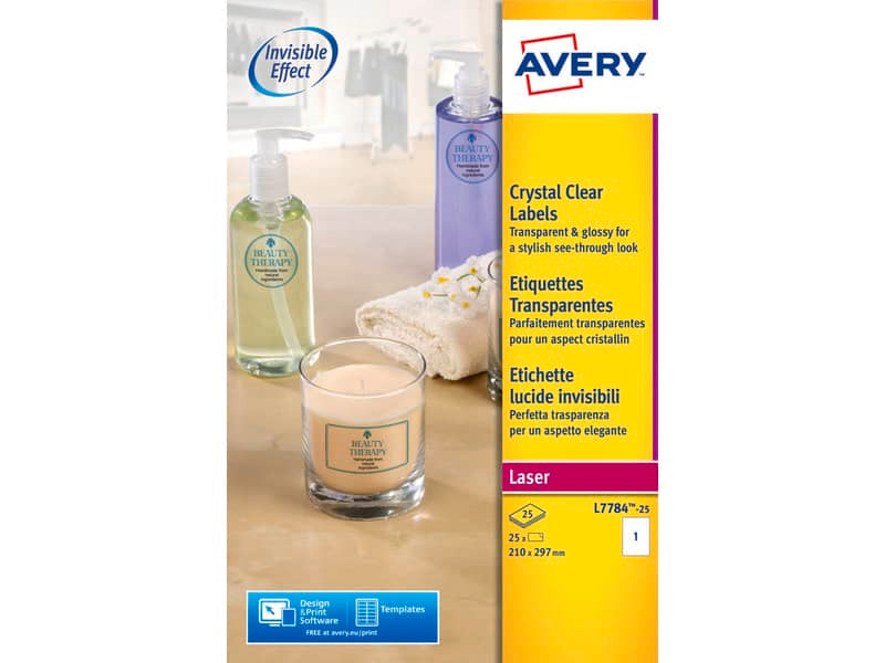 Fai notare i tuoi prodotti con le etichette trasparenti lucide di Avery. Perfette per etichettare confezioni colorate perché una volta applicate risultano invisibili. Assicurano una stampa con colori brillanti e testi nitidi. Comunica i valori del tuo marchio, le immagini e i messaggi in modo professionale con queste etichette, possono essere utilizzate su prodotti, confezioni e materiali di marketing. Disponibili in diverse forme e materiali, per poter soddisfare tutte le tue necessità di etichettatura. Facili da stampare e personalizzare con il software e modelli gratuiti di Avery.