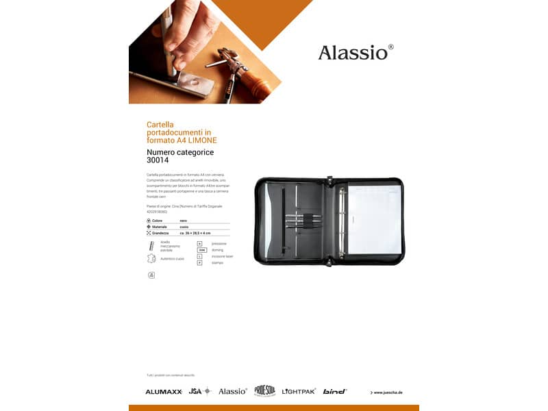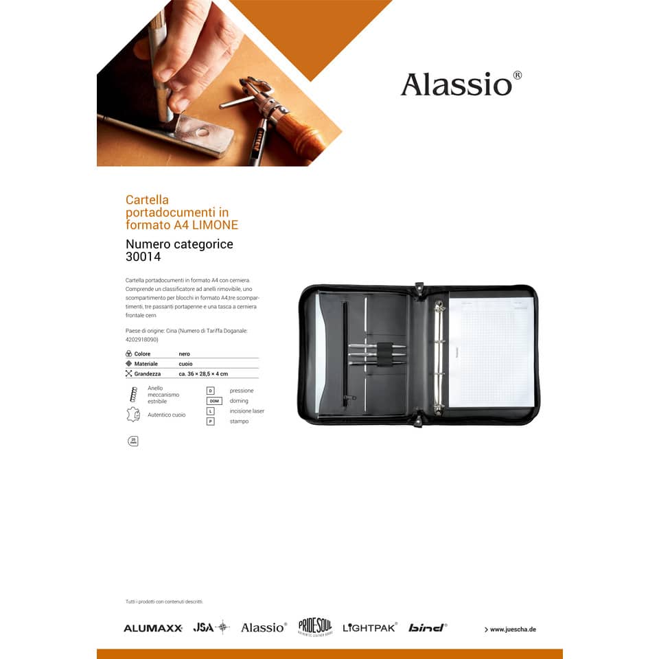 Cartella portadocumenti Alassio LIMONE in pelle 28,5x4x36 cm A4 nero 30014