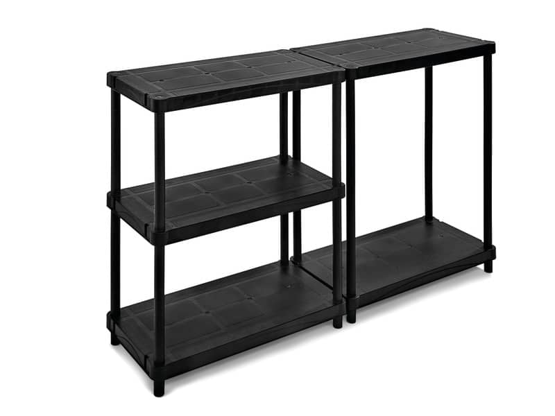 Scaffale con doppia opzione di montaggio: a 5 ripiani (80x40x173,4 H cm) oppure composizione 3 ripiani + 2 ripiani (160x40x92,5 H cm).Piedi regolabili. Colore: nero.