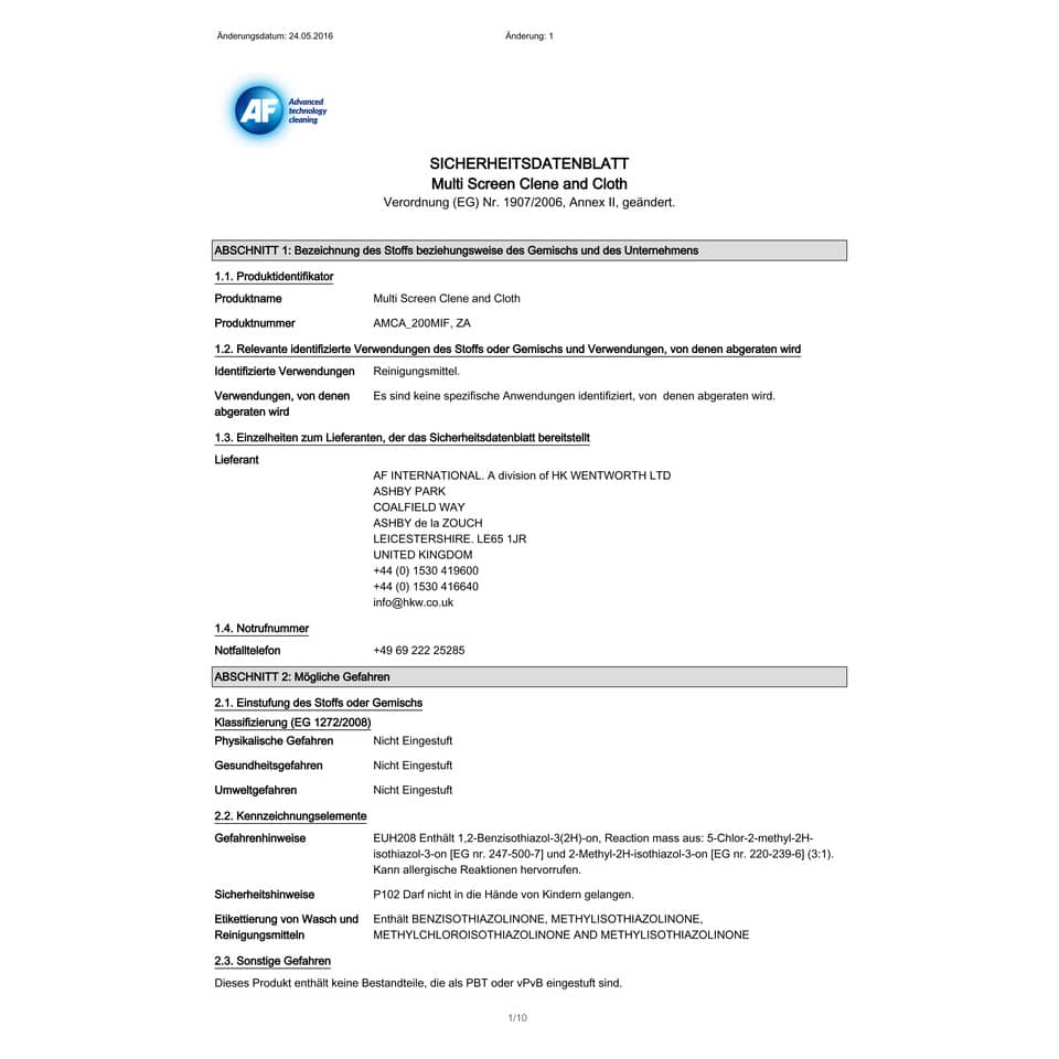 Spray e panno di pulizia AF International bomboletta da 200 ml con panno Multi-Screen-Clene - AMCA_200MIF