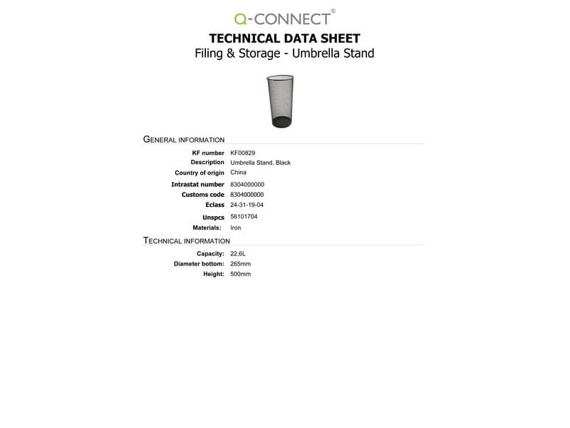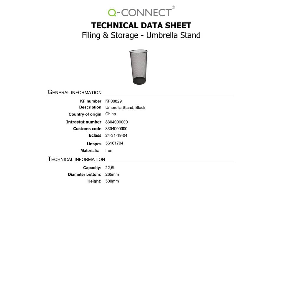 Portaombrelli in metallo Q-Connect 22.6 l h 50 cm x diametro 27,5 cm nero KF00829