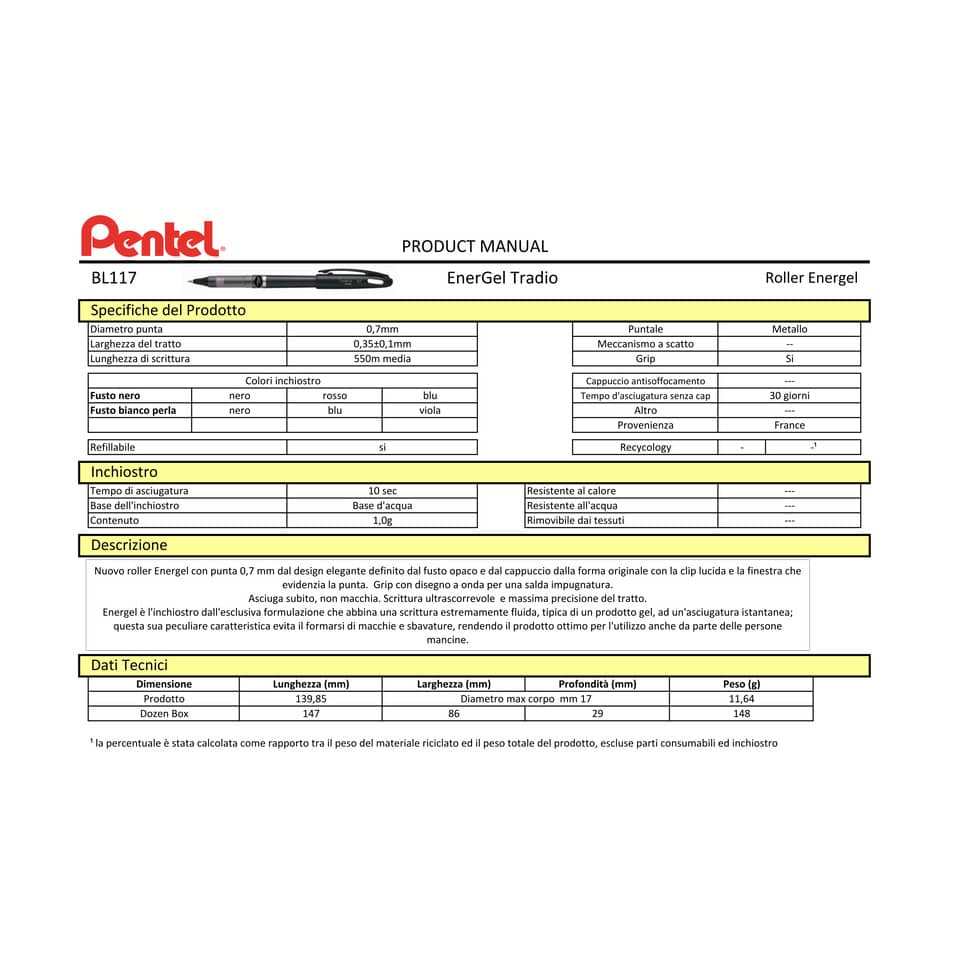 Roller EnerGel dal design elegante definito dal fusto bianco perla opaco, dal cappuccio dalla forma originale con clip lucida e la finestra che evidenzia la punta. Grip con disegno ad onda per una salda impugnatura. Il logo ''EnerGel ink inside'' nel colore di scrittura arricchisce il fusto ed evidenzia la presenza dell'inchiostro EnerGel. Colore nero. Punta 0,7mm. Ricaricabile con refill LR7.