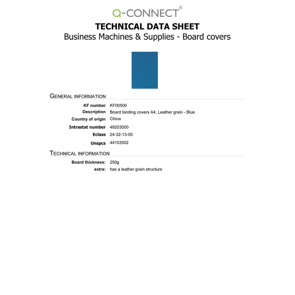 Copertina per rilegatura Q-Connect A4 250 g/m² blu goffrato Conf. 100 pezzi - KF00500