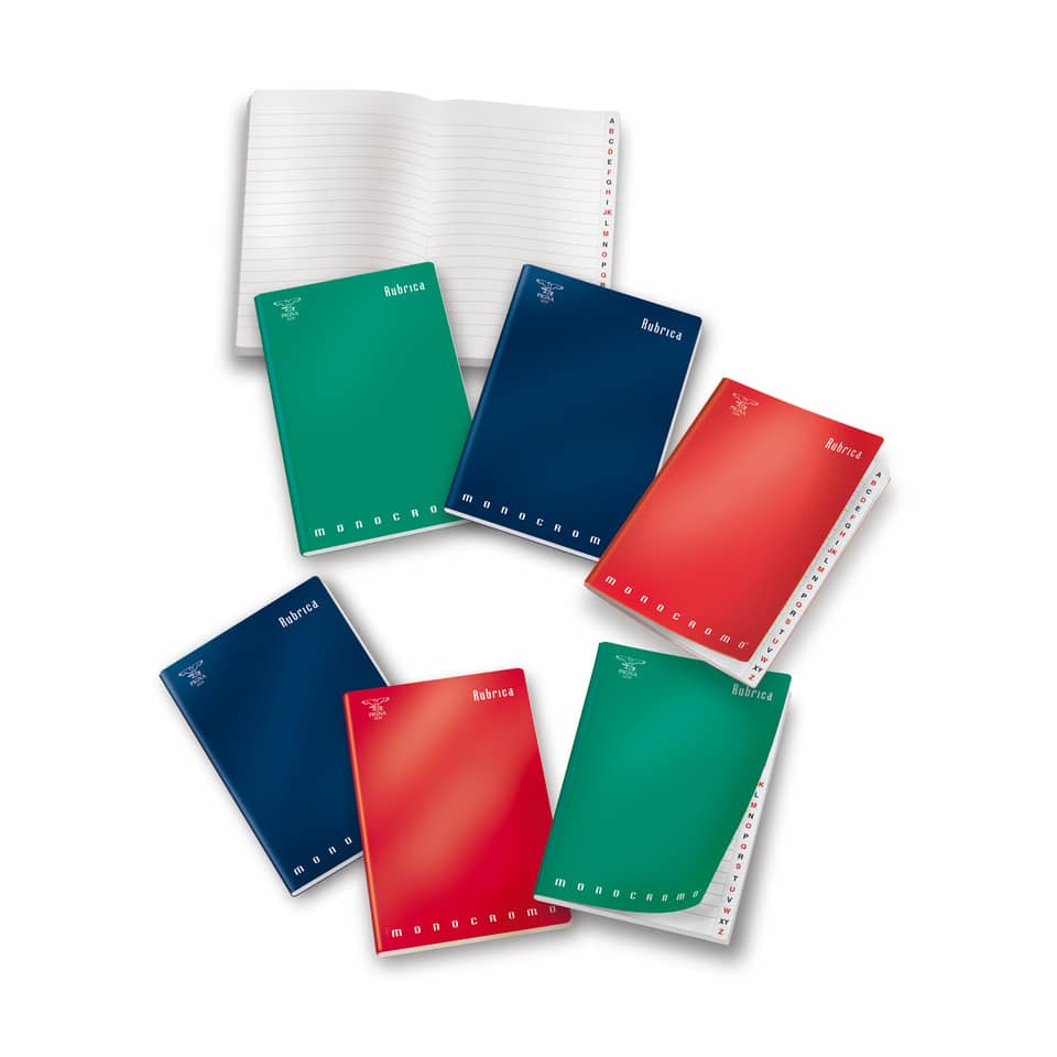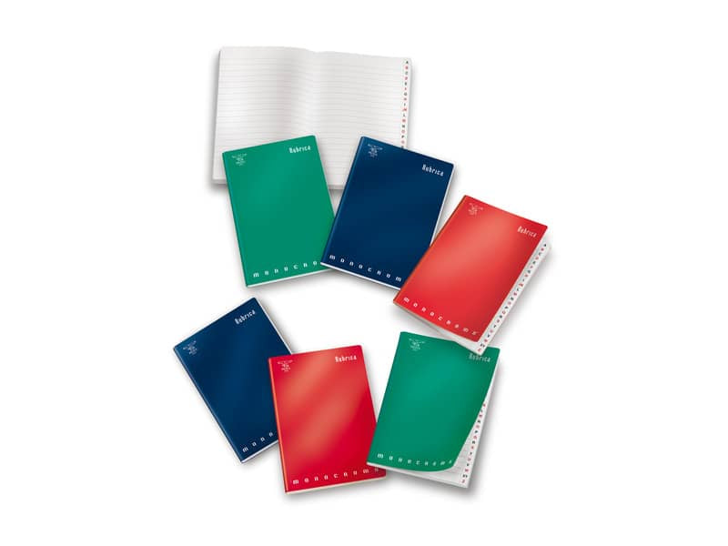 Rubrica Monocromo a punto metallico. Copertina da 200 g/mq. 40 fogli da 80 g/mq, rigatura 1R. Formato 15x20,3 cm. Disponibile in colori assortiti.
