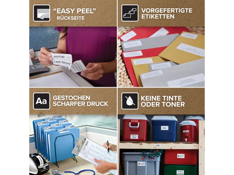 Le etichette Dymo LabelWriter utilizzano un processo di stampa a trasferimento termico, eliminando la scomodità e i costi di inchiostri, toner o cartucce. Formato 89x36mm, plastica trasparente adesivo permanente. Rotolo 260 etichette.