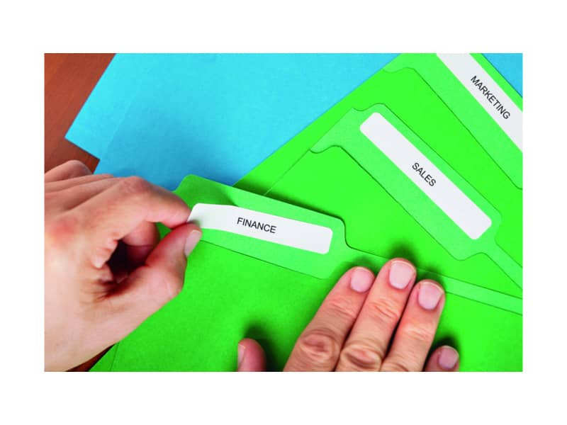 Etichette DYMO LabelWriter in carta per cartelle sospese. Le etichette Dymo LabelWriter utilizzano un processo di stampa a trasferimento termico, eliminando la scomodità e i costi di inchiostri, toner o cartucce. Formato 50x12mm colore bianco adesivo permanente. 220 etichette x 1 rotolo.