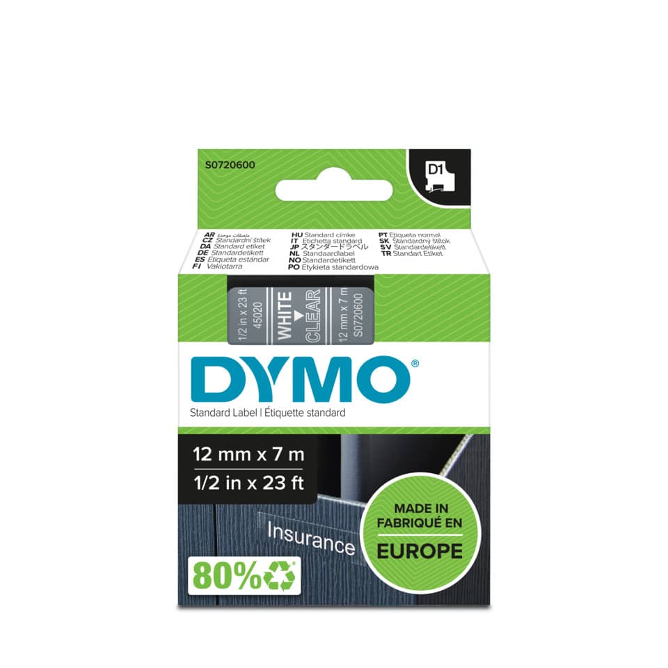 Nastro per etichettatrici Dymo D1 12 mm x 7 m bianco/trasparente S0720600