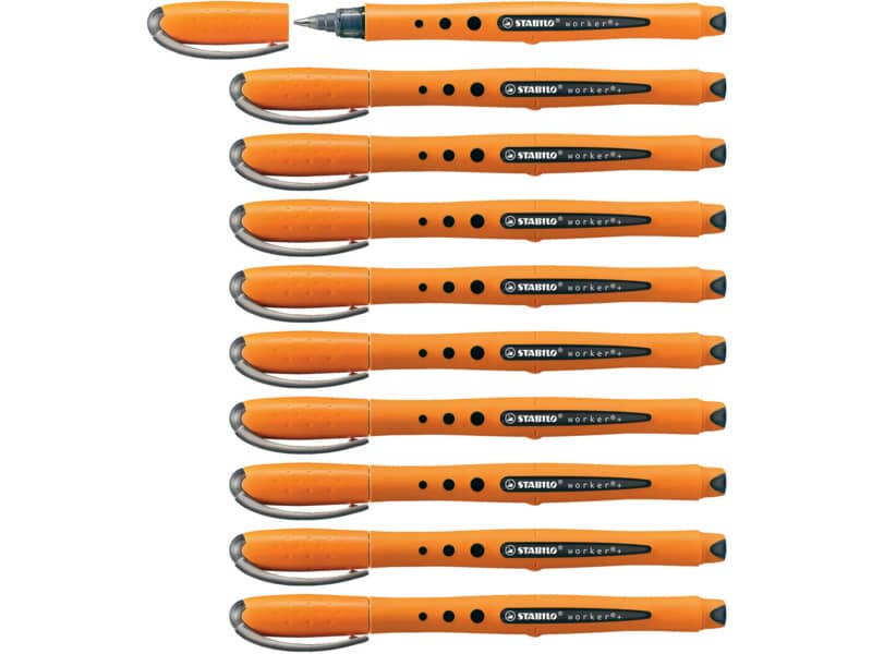 Stabilo worker+ è una penna roller professionale con inchiostro liquido. E' disponibile nei quattro colori più classici: nero, blu, verde e rosso. La punta indistruttibile e la comoda impugnatura anti scivolo offrono una sensazione di scrittura estremamente morbida. Colore: nero.