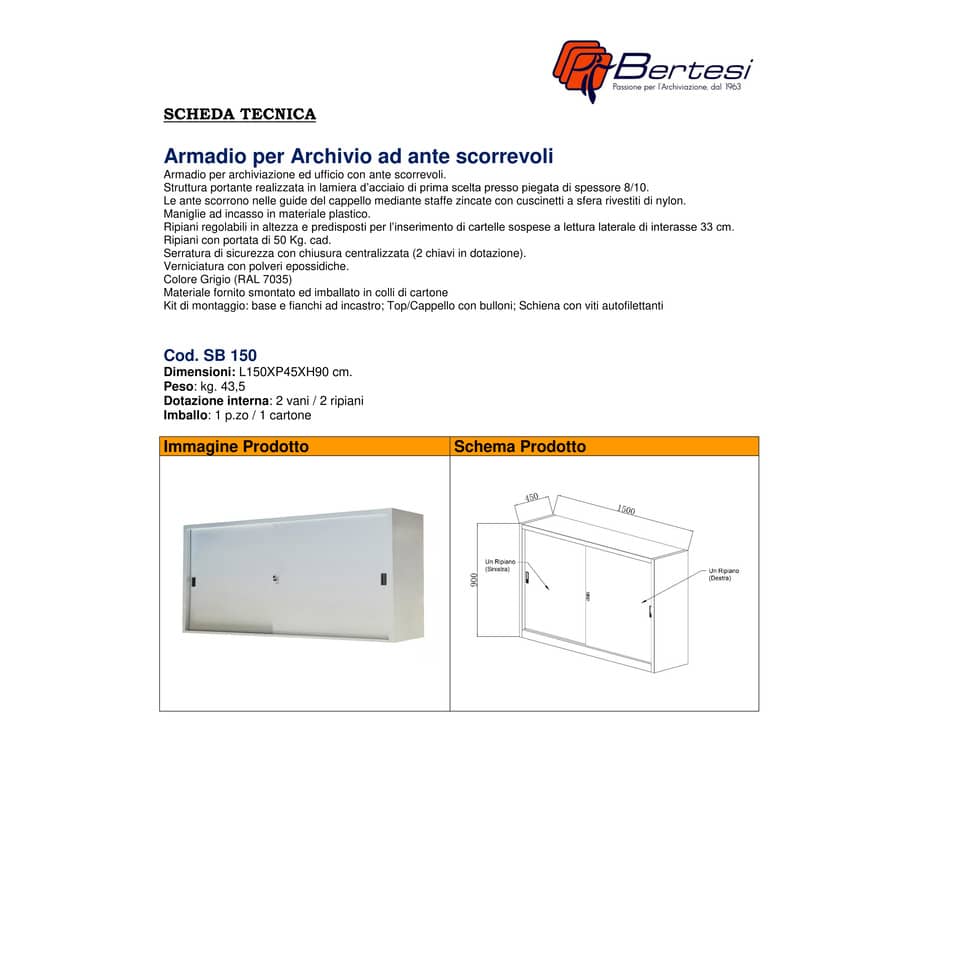 Armadio basso metallico KUBO ante scorrevoli 2 vani/2 ripiani 150x45x90 cm grigio - SB 150