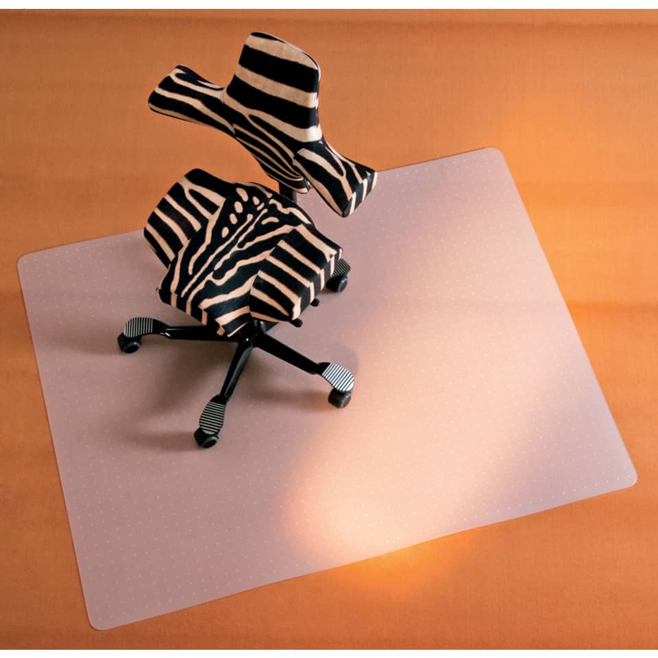 Tappeto salva pavimenti opalino trasparente BSM® con Strato aderente VAB ® per L'antisdrucciolo su tutti i pavimenti. In polipropilene di qualità, misura 130x120cm e circa 2,0 mm di spessore.