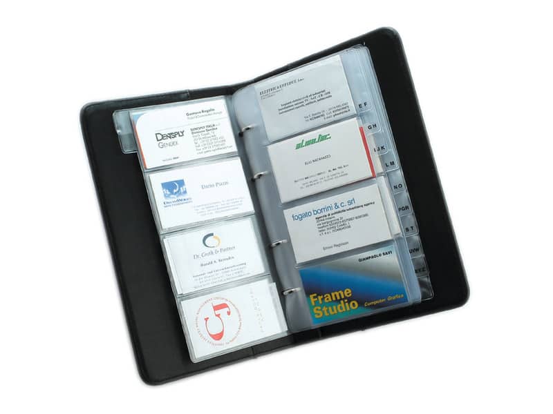 Ricambi per portabiglietti da visita, contiene 12 fogli a 4 tasche con index alfabetico e 7 fogli da 4 tasche liberi.