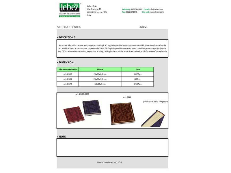 Album 50 fogli In cartoncino con copertina in Vinyl; F.To 30x33 cm.
