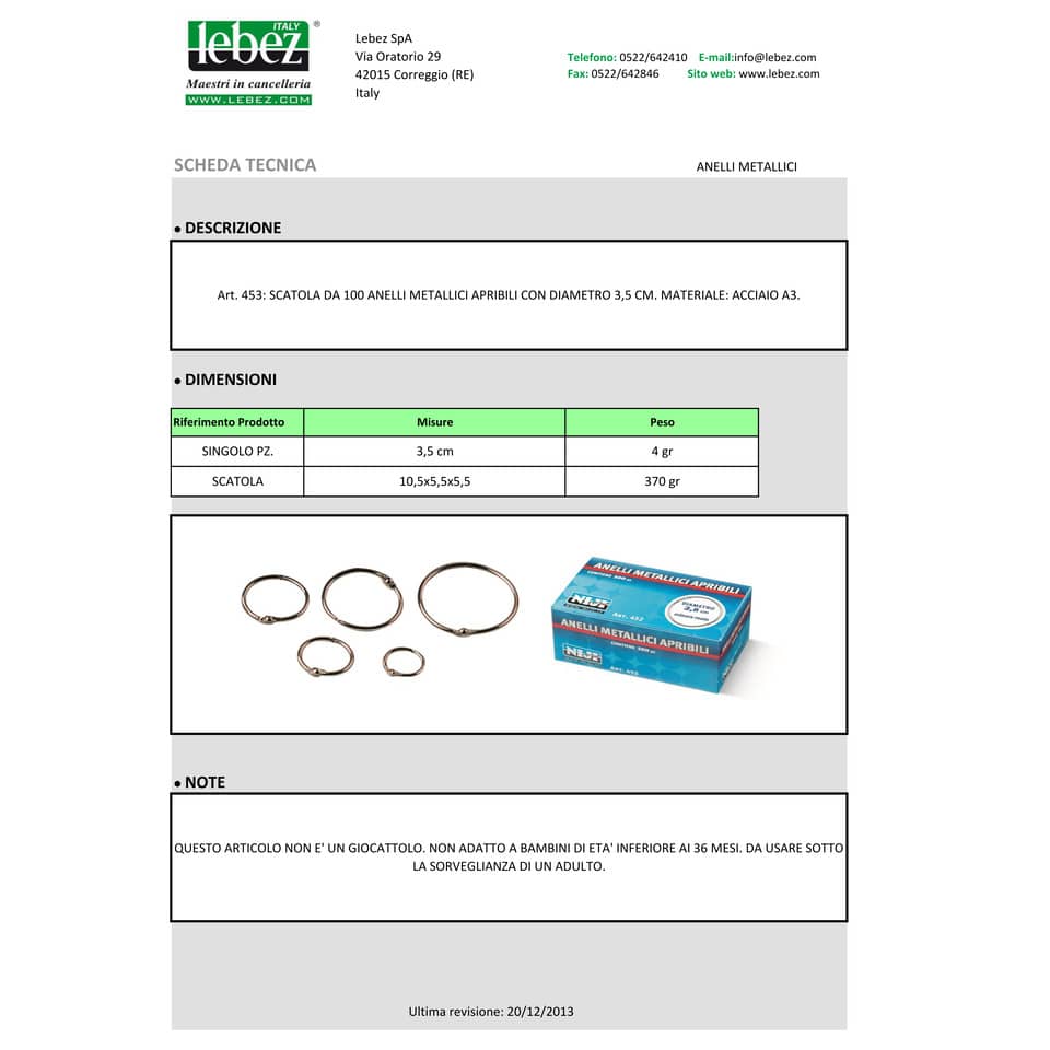 Anelli metallici Niji ⌀ 3,5 cm Conf. 100 pezzi - 453