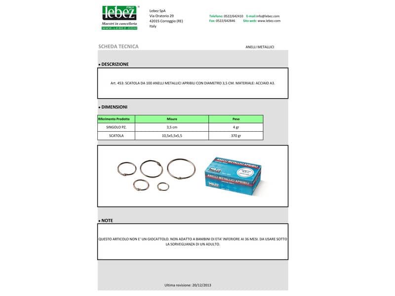 Anelli metallici 3,5 cm. Confezione da 100 pz.