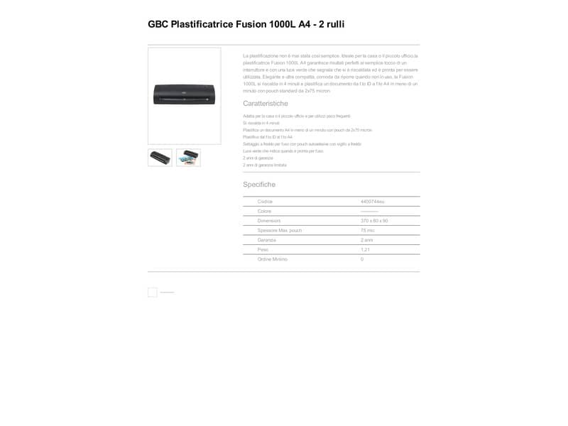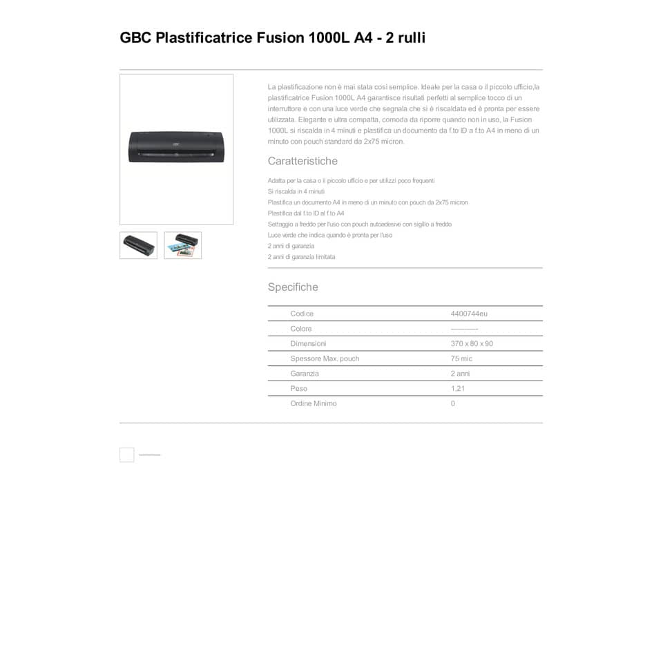 Plastificatrice a caldo GBC Fusion 1000L per pouches 2x75 my a4 4400744EU