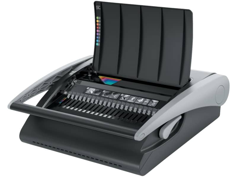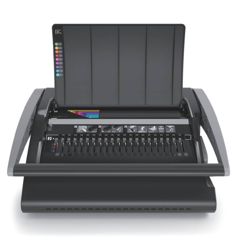 Rilegare non è mai stato così semplice. CombBind® C210 è ideale per volumi medi ed un uso condiviso. Combina una capacità di perforazione fino a 25 fogli da 80 g/mq con una capacità di rilegatura fino a 450 fogli. Rilega formato A3 verticale, A4 o A5 e viene fornito con una maniglia lungo l'intera larghezza per rendere la perforazione della carta facile e regolare. Include anche un pratico scomparto per dorsi CombBind®, il sistema classico per rilegare. Garanzia 2anni. Dimensioni LxPxH: 40x46,5x14,5 cm.