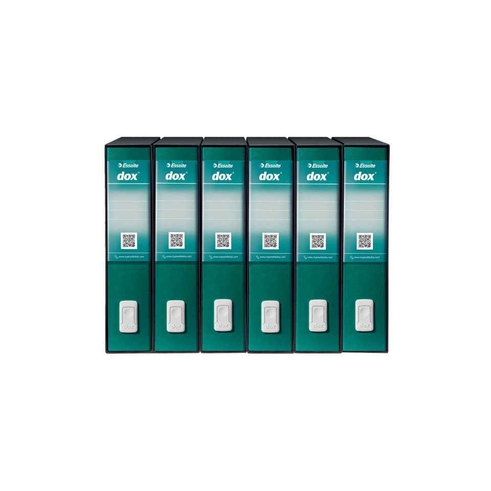 Il registratore a leva Dox 2 è rivestito con carta goffrata antimpronta e rifinito con paralati metallici alla base della plancia. E` dotato di un meccanismo a leva in acciaio nichelato con pressino, linguella di estrazione a scomparsa e portaetichette con etichetta reversibile. La custodia è rivestita con carta nera goffrata trattata antimpronta con interno nero. Ogni dox possiede al suo interno un volantino con il codice QR da applicare sull' etichetta e 3 semplici indicazioni per come scaricare la app su App Store e Google play Dorso: 8 cm. Modello: Protocollo. Colore: verde mare.