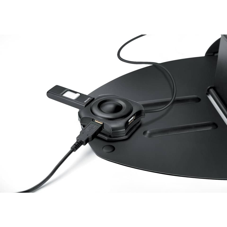 Workstation laptop con altezza regolabile in 9 posizioni per garantire una visione ottimale ed evitare tensioni sul collo. Supporta laptop fino a 17'', di peso fino a 6,8 Kg. Hub USB 2.0 a 4 porte integrato. Il reggi documenti integrato permette l'orientamento verticale o orizzontaleFessure per l'aerazione. Piedini e strisce gommate garantiscono maggiore stabilità e sicurezza. Il sistema di gestione dei cavi minimizza il disordine. Certificato BS EN ISO 9241 da FIRA international, un organismo indipendente di certificazione per l'ergonomia.
