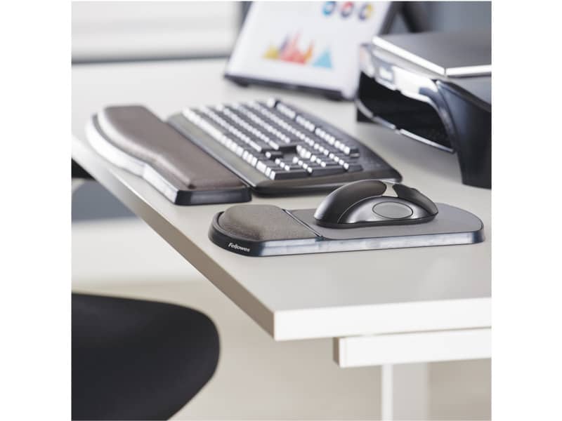 L' inclinazione regolabile con possibilità di movimento fino a 10mm in avanti o indietro permette di adottare una posizione personalizzata e comoda. Il morbido gel fornisce comfort e sostegno è ricoperto da un tessuto duraturo che resiste alle usure e strappi di tutti i giorni. Il Mouse pad ottico è di facile utilizzo grazie all'ottima tracciabilità della superficie. Certificato BS EN ISO 9241 da FIRA International, un ente indipendente di accreditamento sull'Ergonomia.
