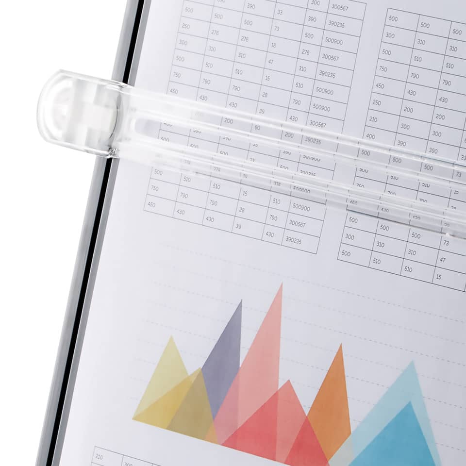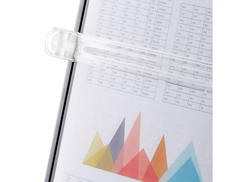 - Altre caratteristiche: con supporto a cavalletto regolabile per portare a un angolo visivo e a un'altezza confortevoli, supporto reggidocumenti ruotabile di 90° per un uso sia in verticale che orizzontale. Il righello guida scorre in alto e in basso e può essere spostato quando non serve