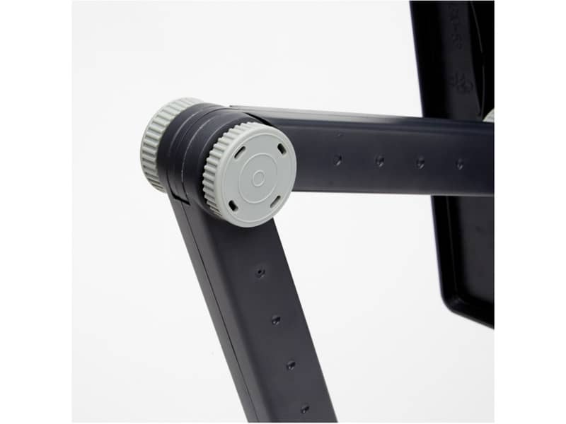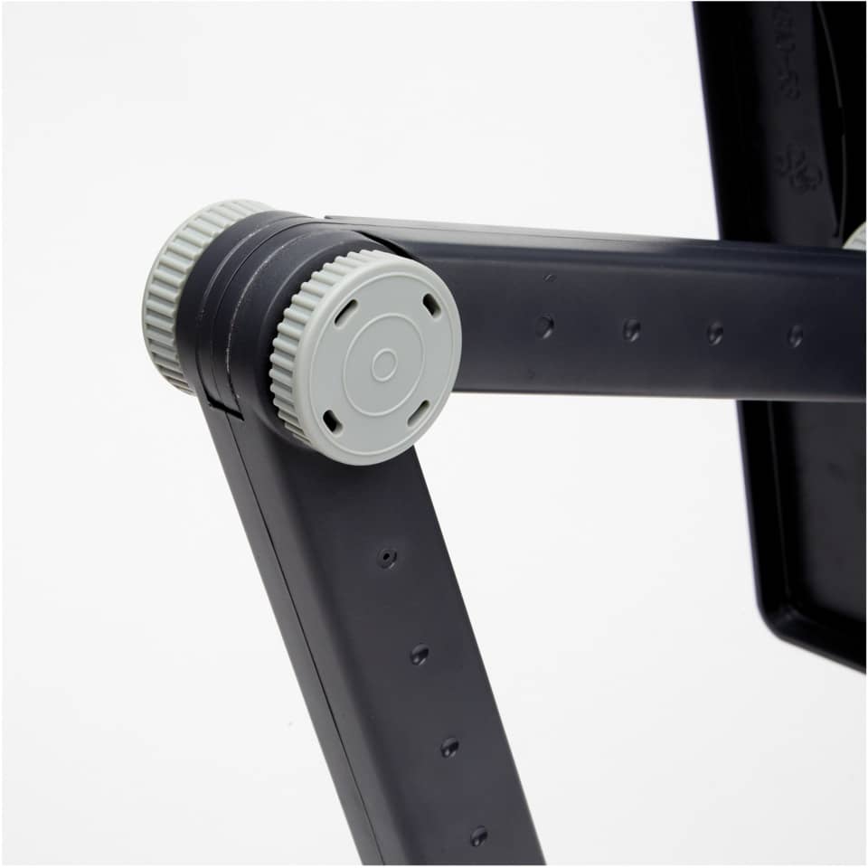 Il braccio flessibile si aggiusta per un angolo visivo e altezza ergonomicamente corretti. La piastra reggi documenti ruota di 90° per posizionarla in verticale o orizzontale. La guida a righello si muove e può essere spostata lateralmente quando non serve. La clip reggifogli regolabile regge documenti A4 e più ampi. La base pesante offre stabilità ed inoltre contiene uno spazio di archiviazione per 3 CD e note Post It. Contiene fino a 150 fogli di carta contemporaneamente. Colore: grafite.