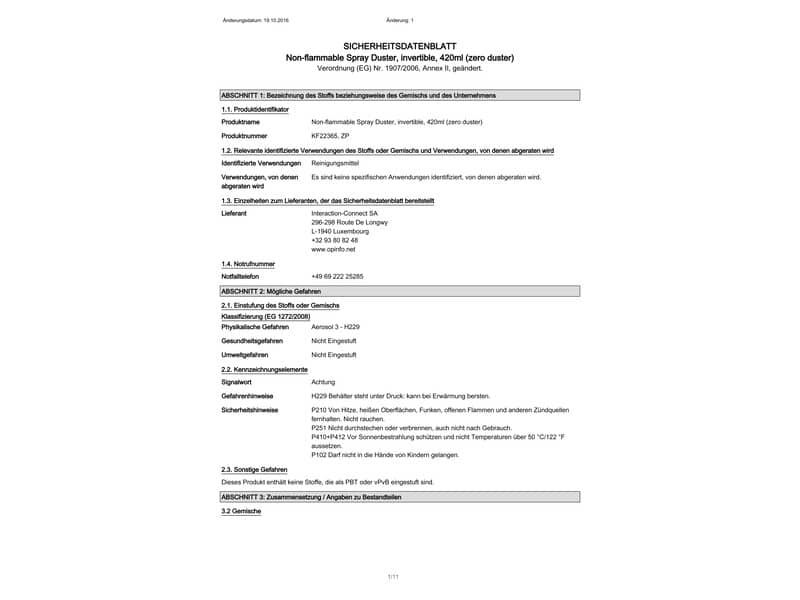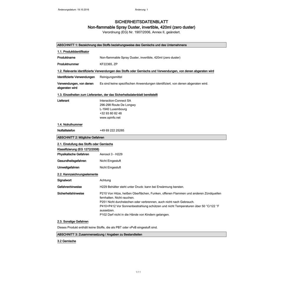Aria compressa non infiammabile. Non contiene silicone né olio; utilizzo sicuro su lenti e postazioni di lavoro.