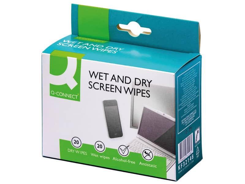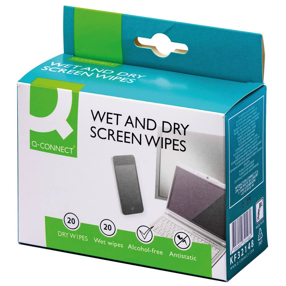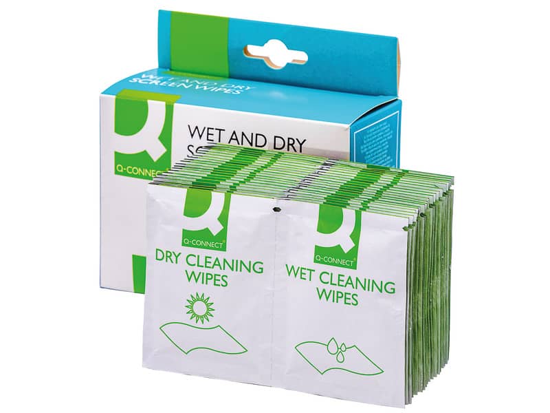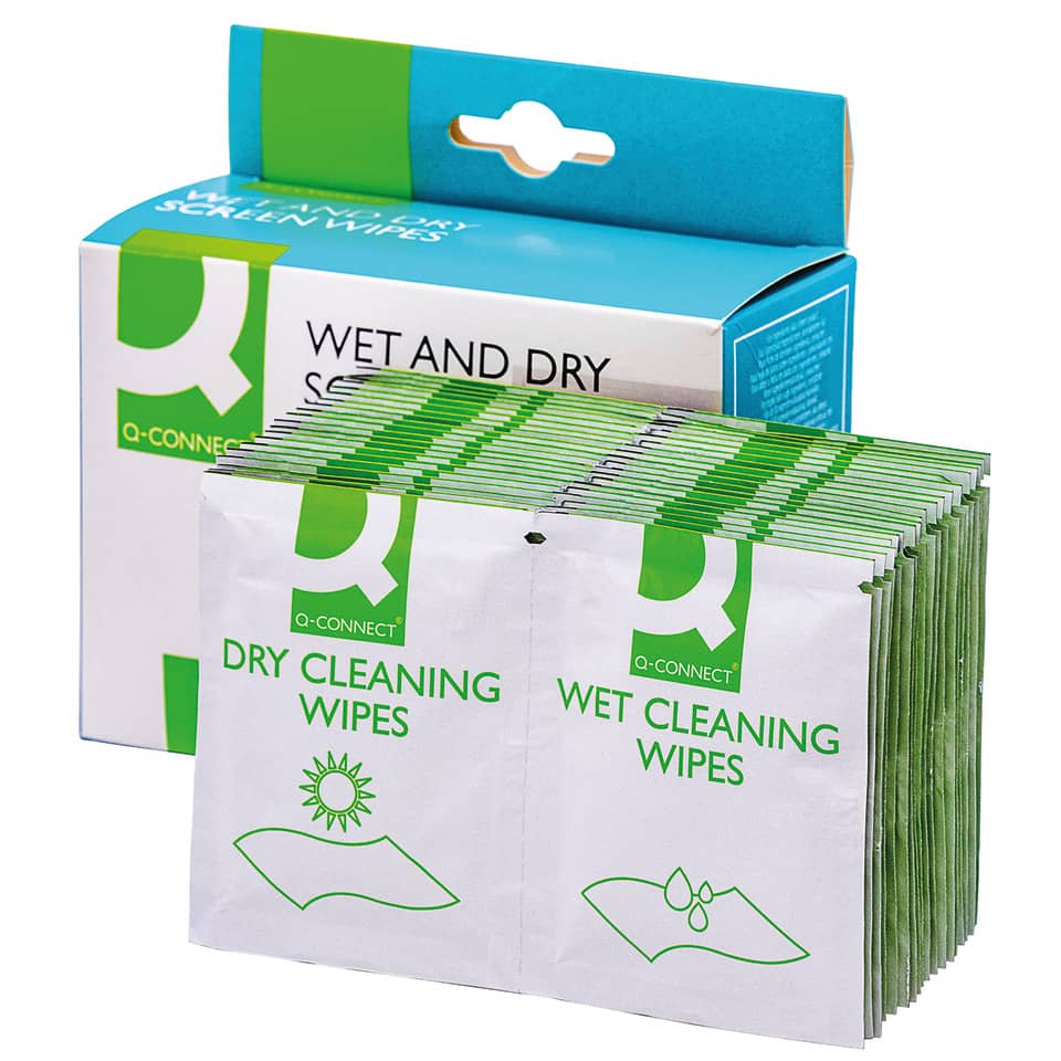 Salviette di pulizia bagnate/asciutte Q-Connect scatola da 20 bustine doppie - KF32148A