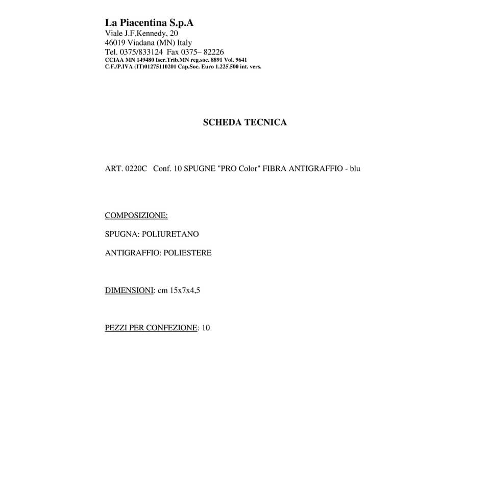 Confezione da 10 pezzi spugna con fibra antigraffio, ideale per superfici delicate, toglie lo sporco senza graffiare. Da utilizzare umida. Misura cm. 15x7x4,5.