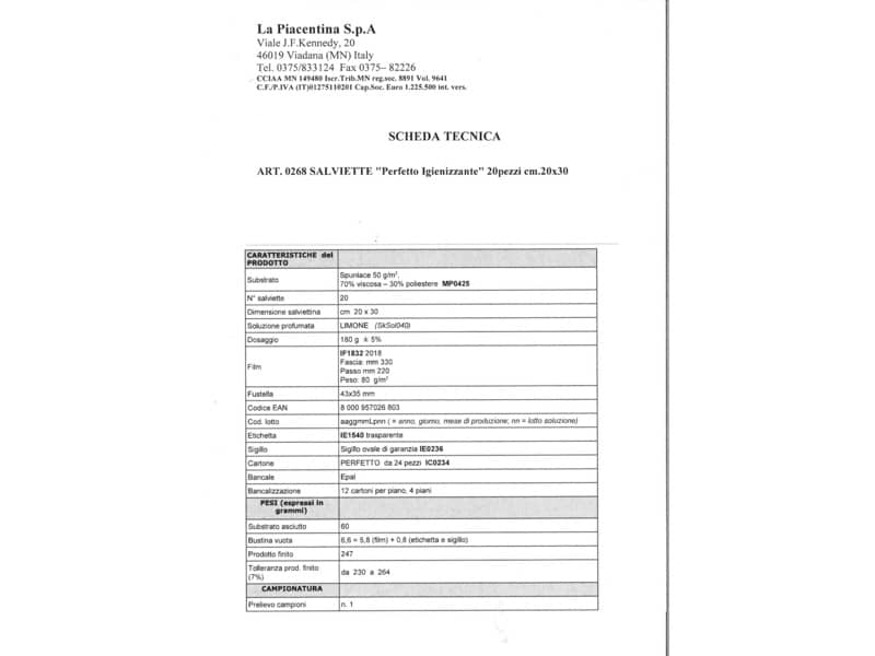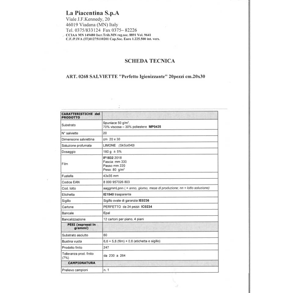Salviette igienizzanti Perfetto 20x30 cm profumate bianco conf. 20 salviette - 0268