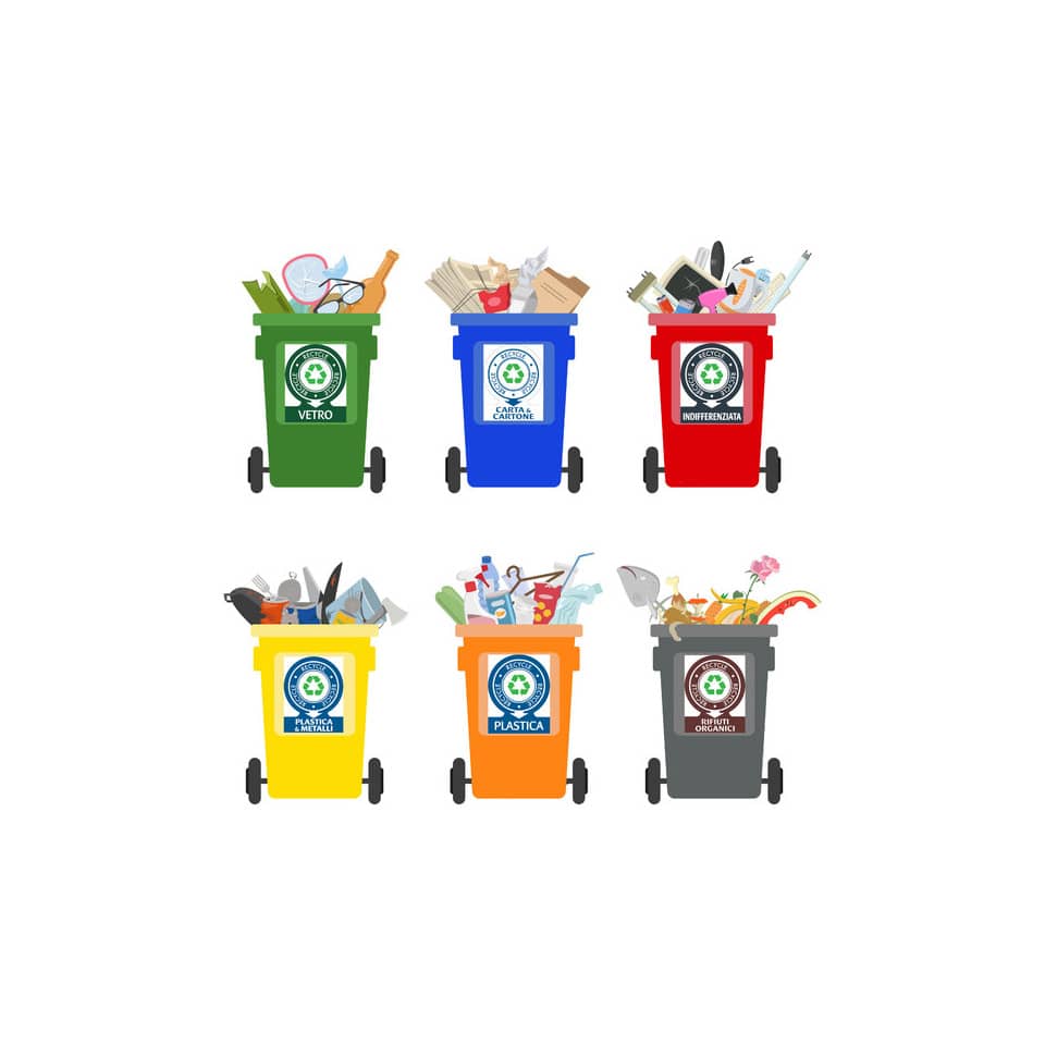 Etichette per contenitori portarifiuti raccolta differenziata TICO 114x110 mm 1 et./foglio - conf. 6 fogli KIT-OF6-IT