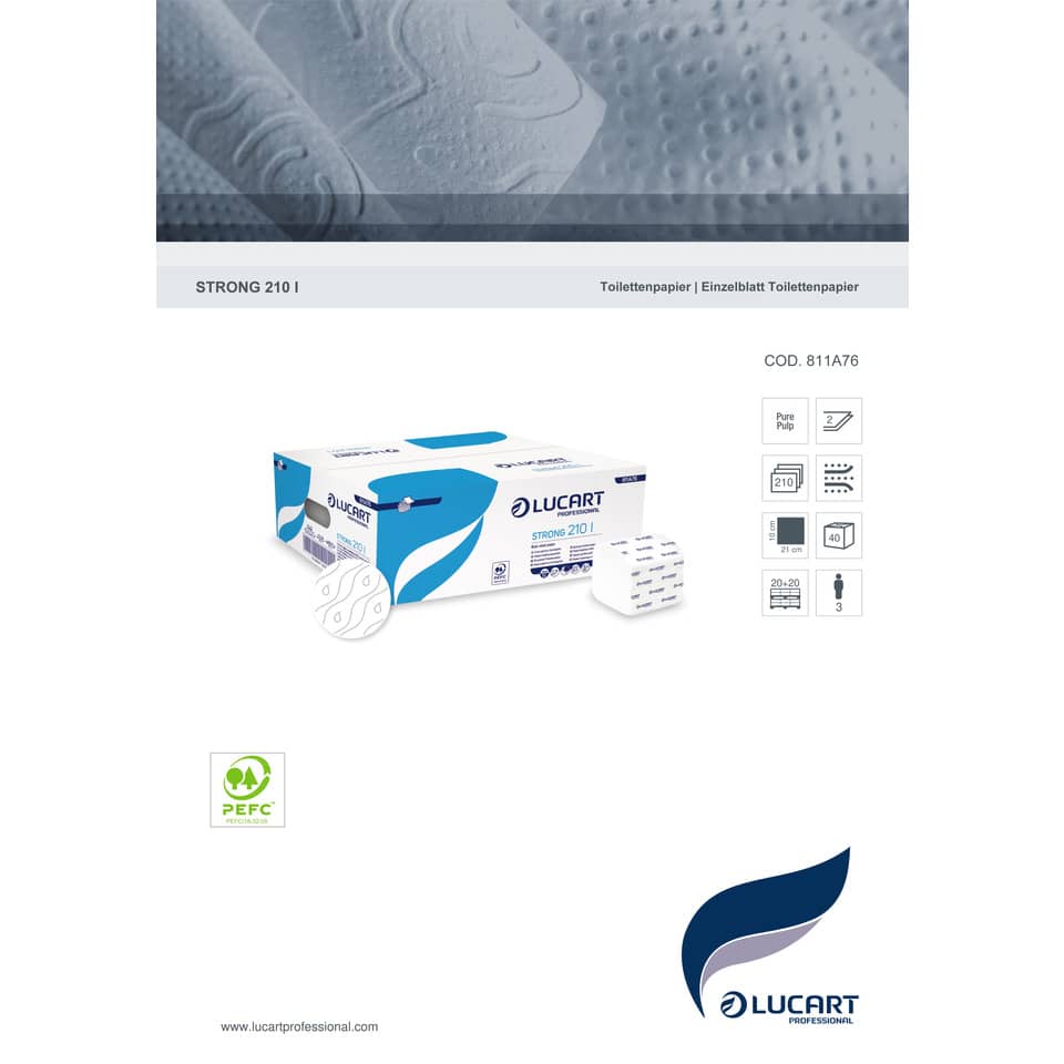 Carta igienica interfogliata Lucart Strong 210 l 2 veli 40 conf da 210 foglietti - 811A76