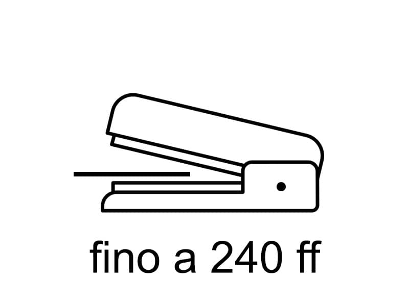 Cucitrice per alti spessori con guida regolabile per la profondità di gola e base antiscivolo. Dotata di finestra per l’identificazione del punto inserito e sistema di sbloccaggio punti inceppati. Dal design innovativo e accattivante. Manico antiscivolo.Porta punti serie 23, da 23/6 a 23/24, per cucire da 2 a 240 fogli