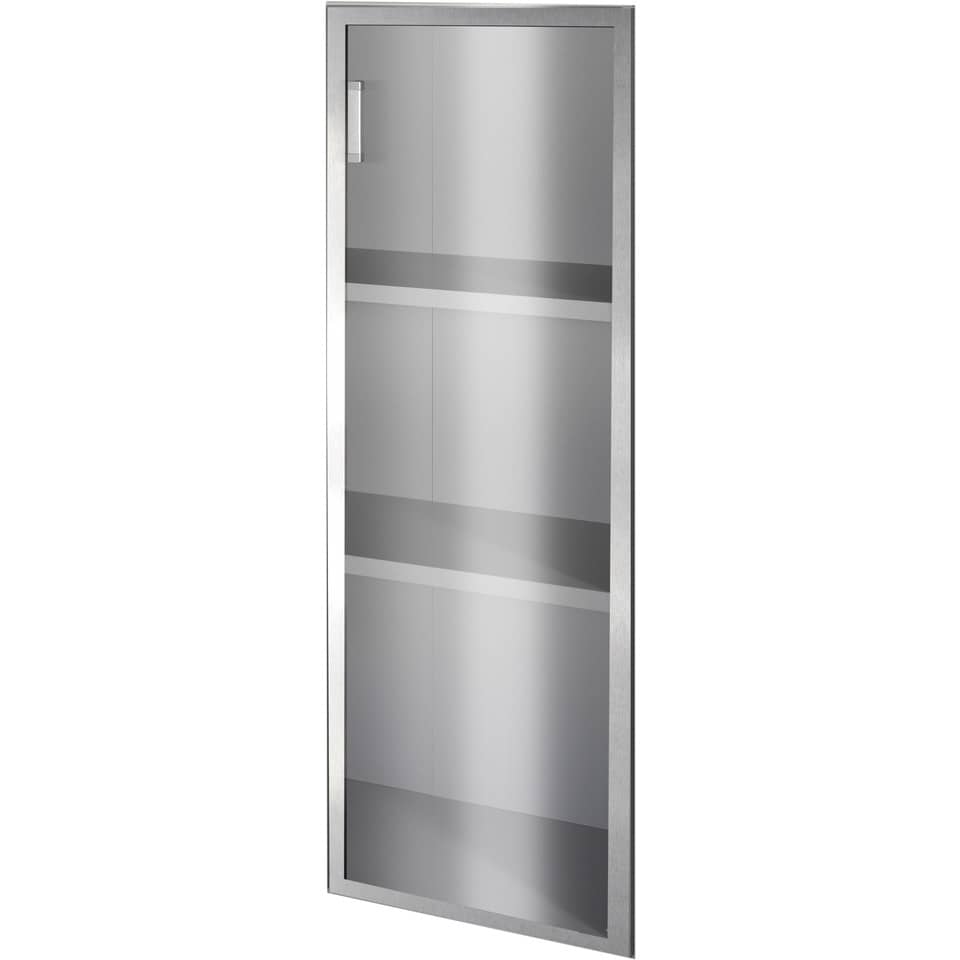 Anta in vetro con bordo in alluminio, cerniera ammortizzata, con maniglia color grigio alluminio. Comprensiva di ferramenta. Dimensioni complessive 45xH.130 cm. Peso complessivo 22,5 kg.
