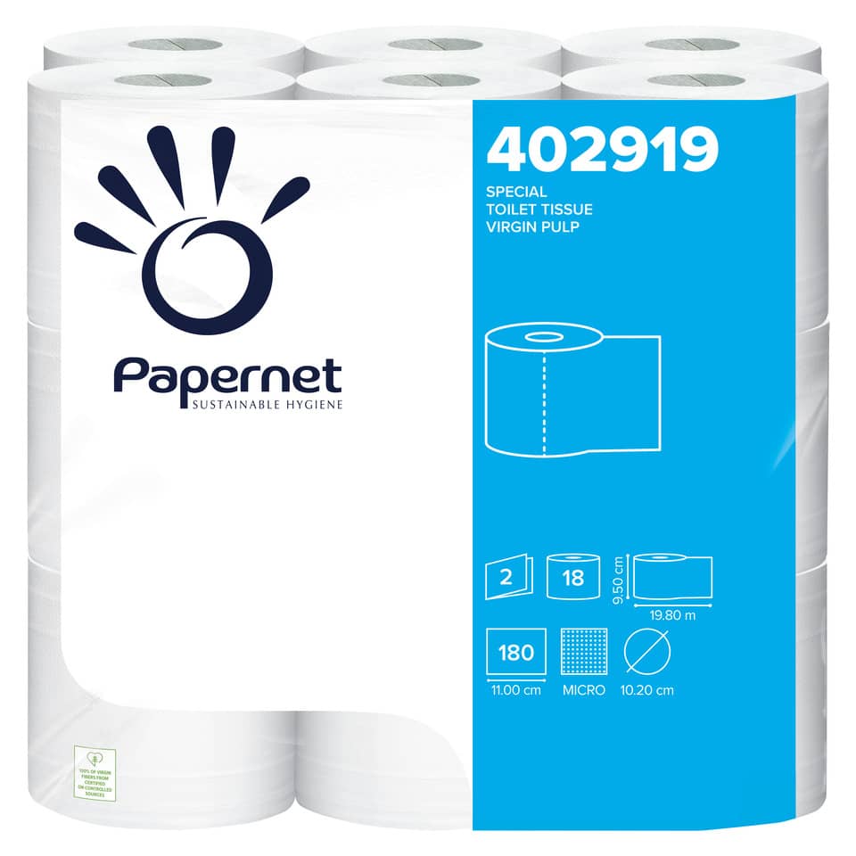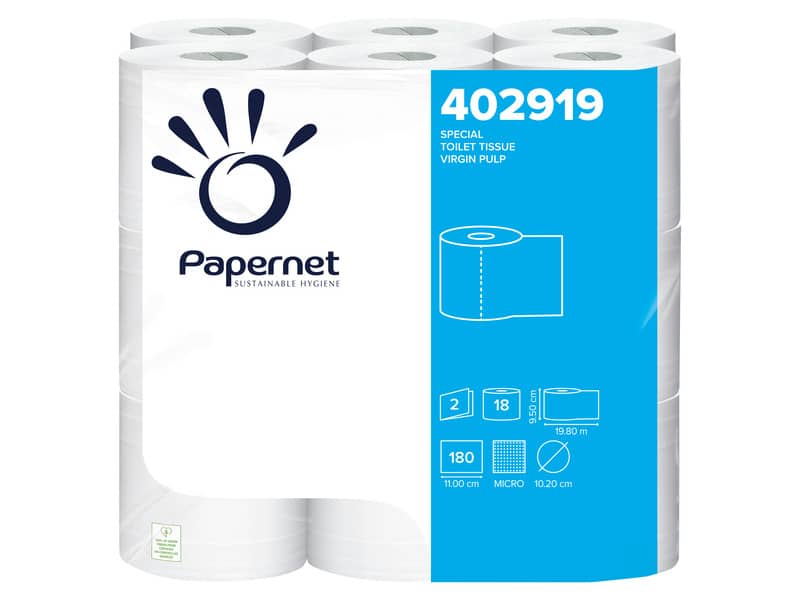 Carta igienica microincollata Papernet 180 strappi - 2 veli Conf. 18 pezzi - 402919